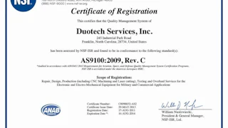Duotech Services Completes AS9100C Registration Process