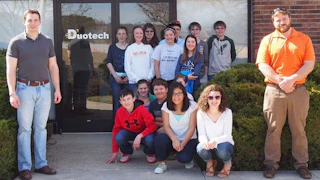 A local student club called Gilliam’s Hope visited Duotech on Sunday, March 8 to tour the DSI facilities. Fourteen students from Macon Middle School in Franklin, NC attended to receive a personal, in-depth experience on how Duotech supports aerospace and defense industries around the world. The students visited DSI engineering, repair, and machine shop work areas and gained a unique immersion into the tools and techniques DSI technicians and engineers use on a daily basis to solve customer problems worldwide.